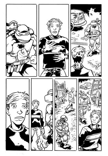 Besides my TMNT work, I have many self-published comics, including Paleo: Tales of the Late Cretaceous, Dragonfly, A Walk Through Dinosaurland, Hellride, Dinosaur Head Cat and the Box City Wallops.